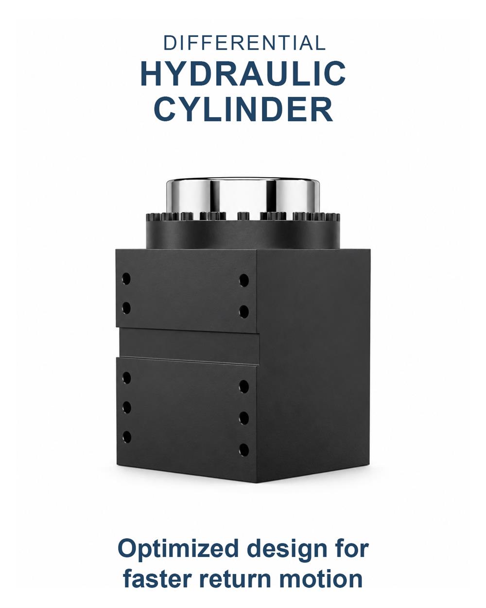 Differential cylinders can use unequal piston areas on each side. This differential design enables faster return strokes without consuming extra hydraulic power.